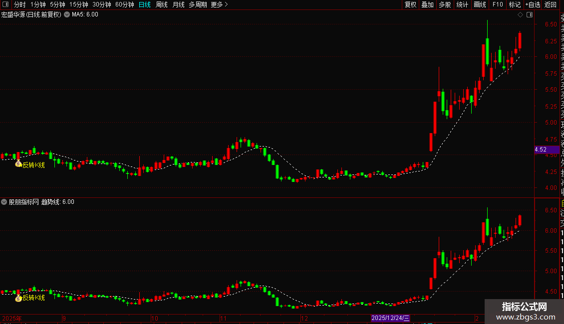 DRAWTEXT(条件,L*0.98,'★反转K线'),COLORYELLOW;