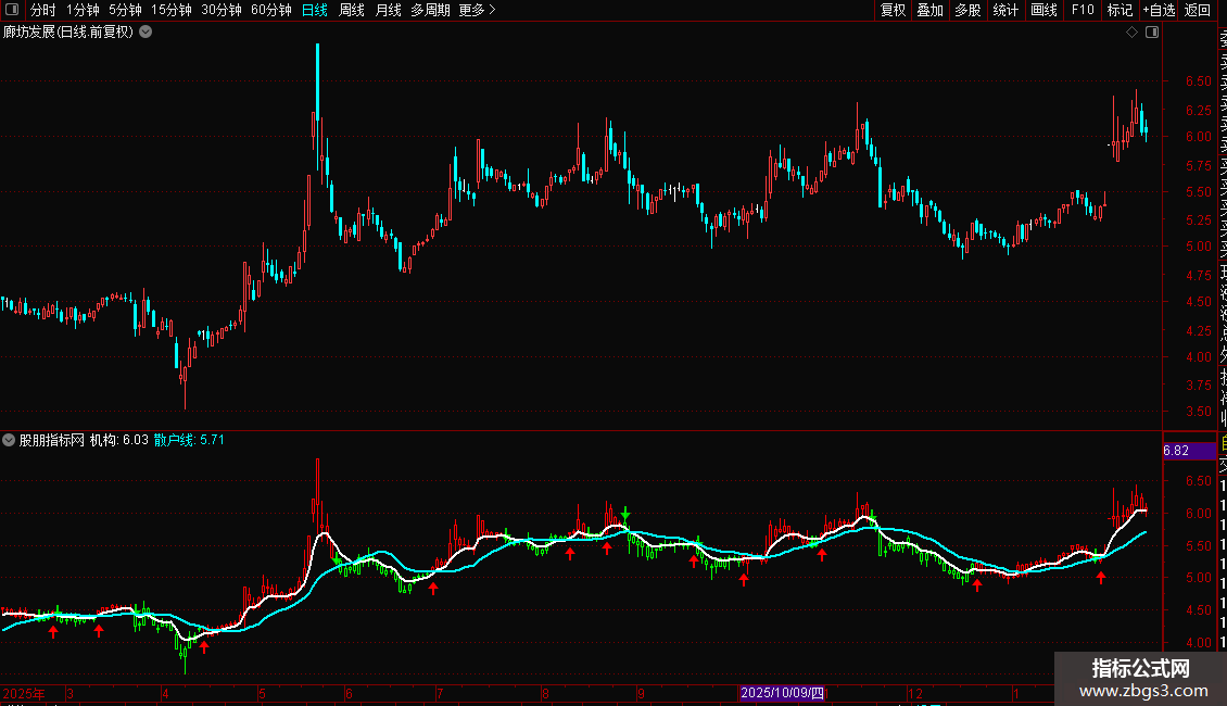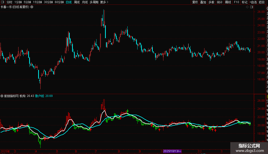 3. 机构与散户线:通过两条不同周期的均线(6日和18日)来粗略模拟“机构”与“散户”的成本趋势,其相对位置和交叉可辅助判断资金力量对比。