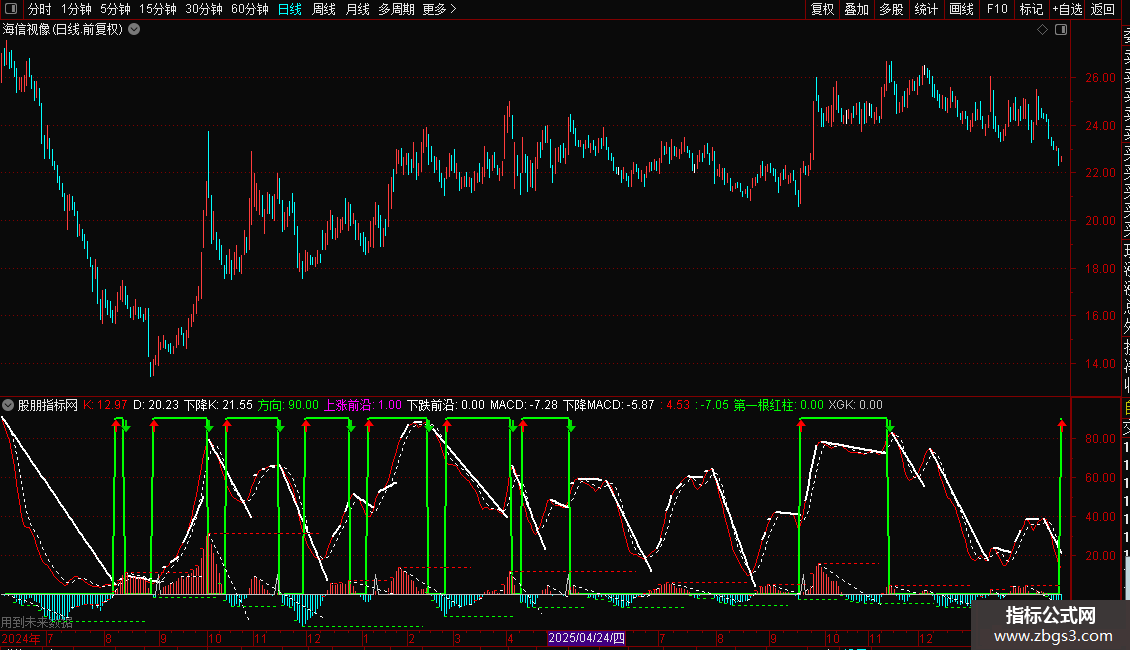 2. 通过 MACD 红柱拐点、趋势方向(ZIG)确认上涨信号;