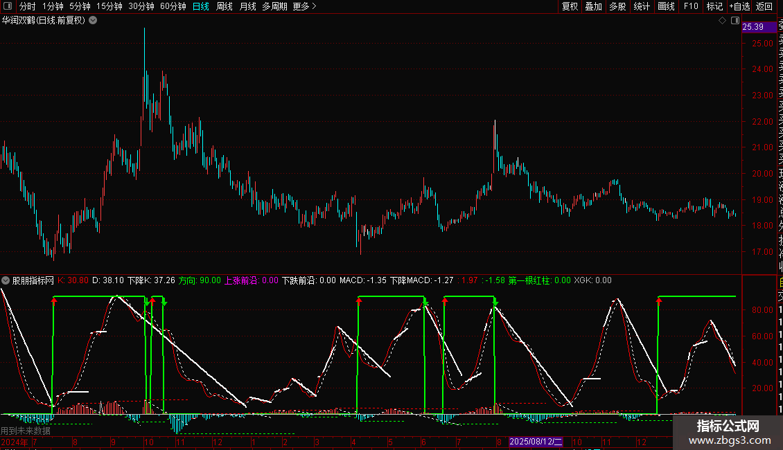 方向:100-IF((F1> REF(F1,1)),10,100),COLOR00FF00,LINETHICK2;