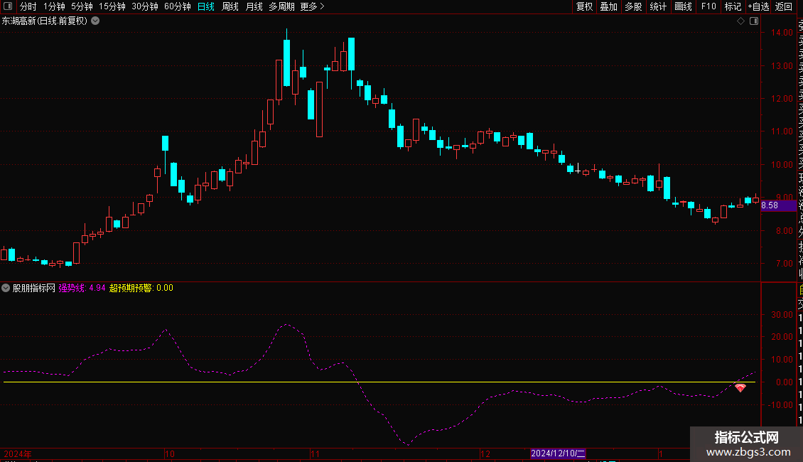 DRAWICON(CROSS(强势线,超预期预警),超预期预警*1.002,25);