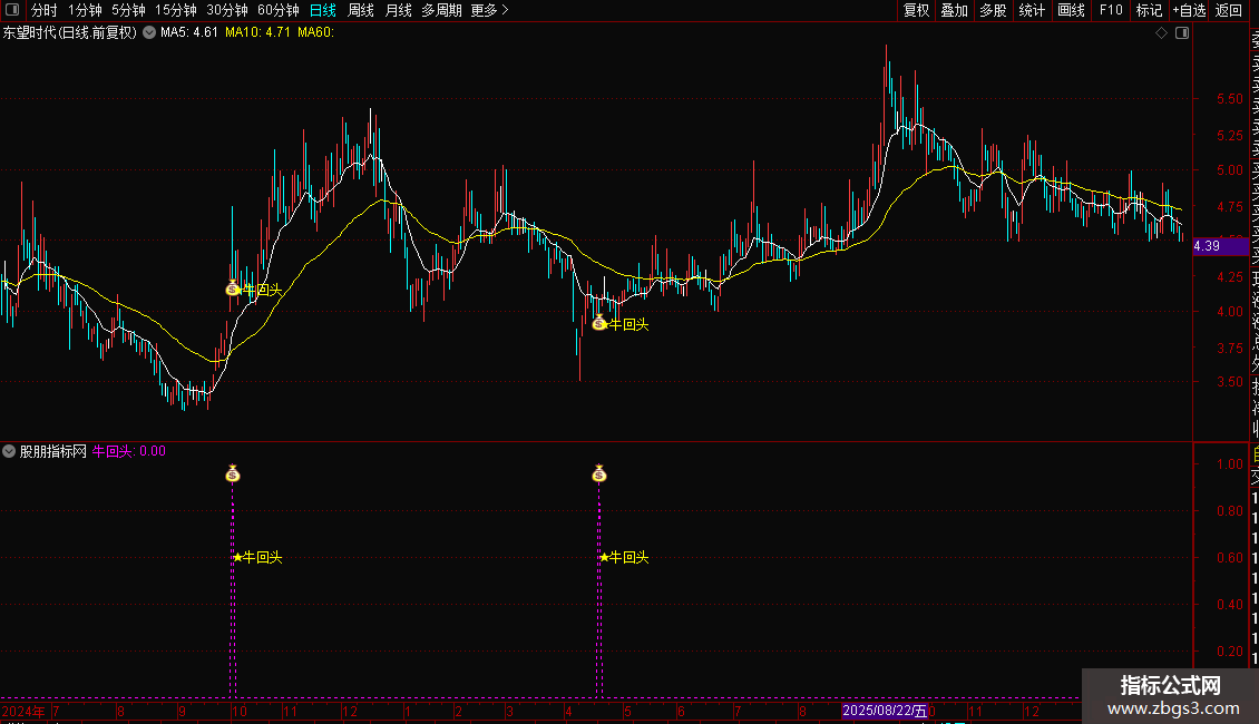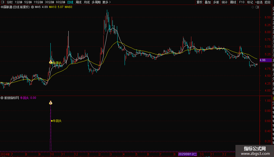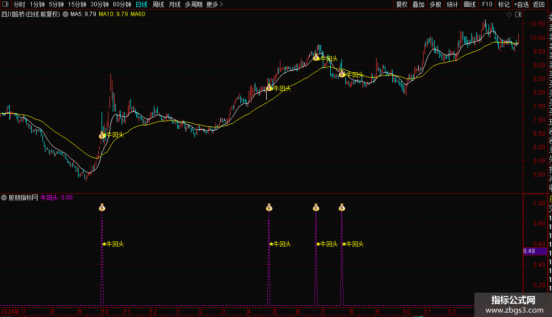 1. 主图公式:导入通达信主图指标,K线图中出现黄色“★牛回头”图标,即为潜在买点;