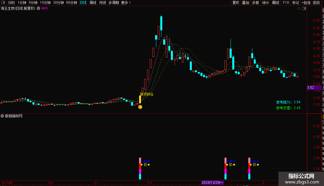 1. 主图公式核心是标注龙虎榜和游资锁仓信号,附带支撑阻力、多维度评分辅助判断;