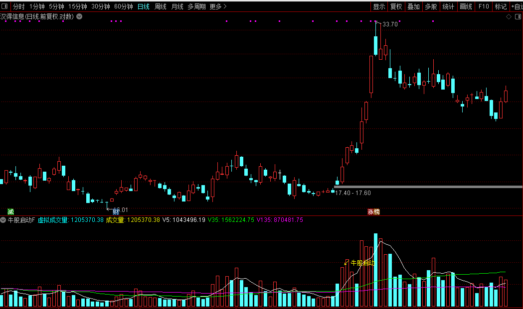 通达信【牛股启动】 副图/选股寻找趋势拐点即成交量的趋势秘密拐点源码