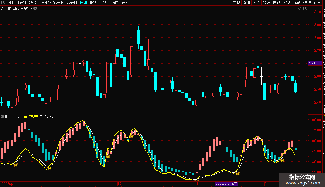 - 黄线上穿白线视为趋势转强信号,结合图标提示关注。