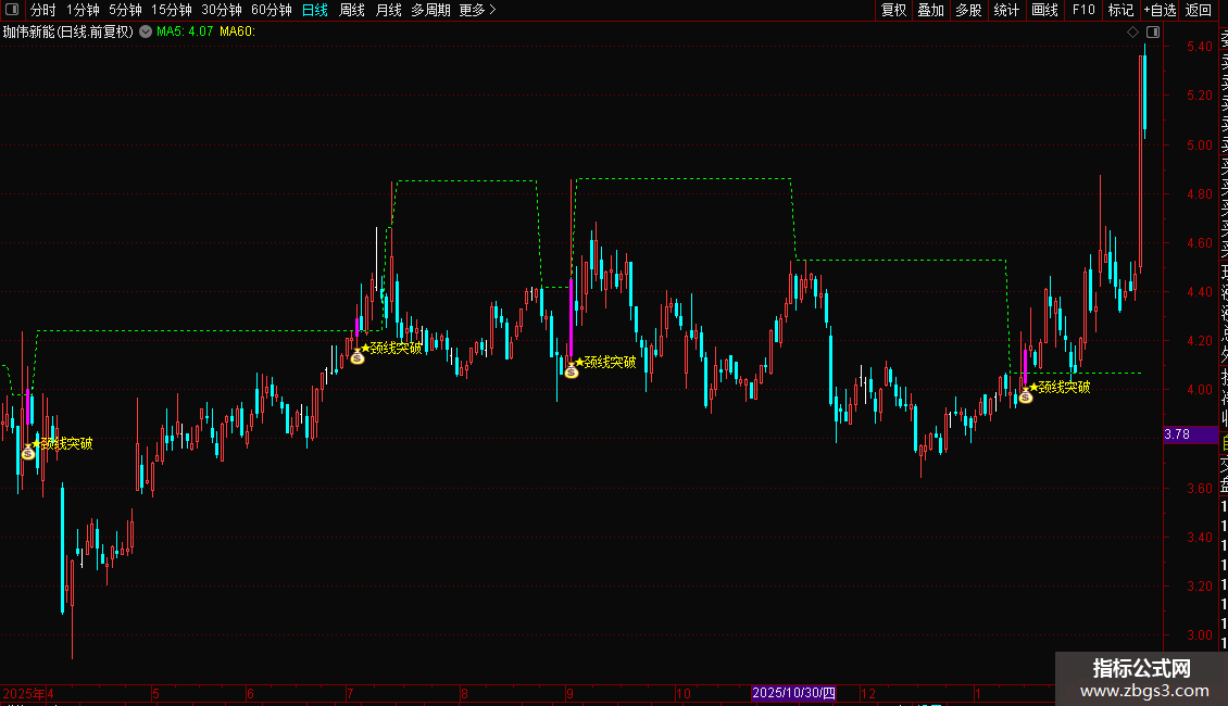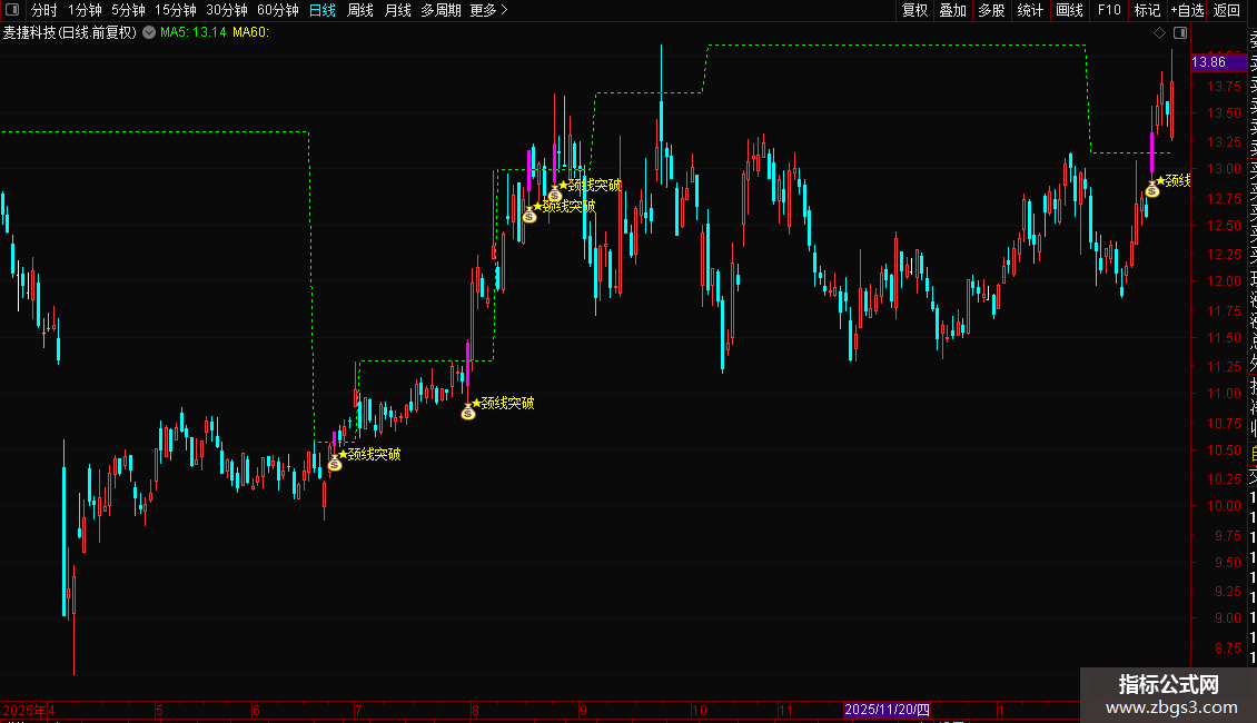 指标用于识别股价突破颈线的信号。