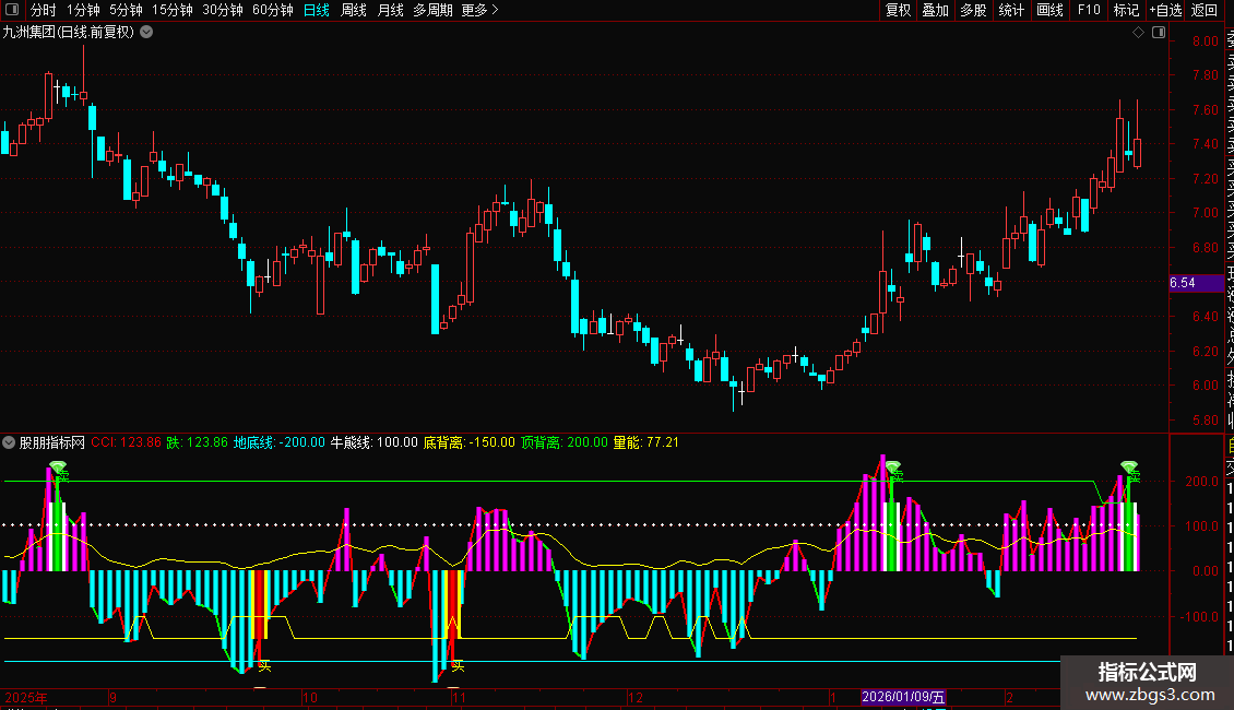 通达信〖趋势CCI〗捕捉价格的极端反转和背离副图公式源码