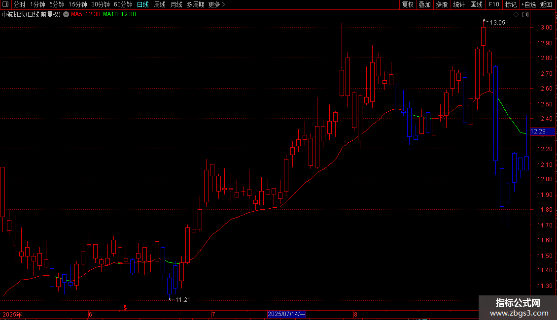 使用上,指标通过BBI线的颜色变化(红/绿)判断短期趋势强弱,同时通过K线颜色与BBI线的相对位置(红K/蓝K),直观识别价格是运行于多空分界线上方还是下方,辅助判断买卖时机。