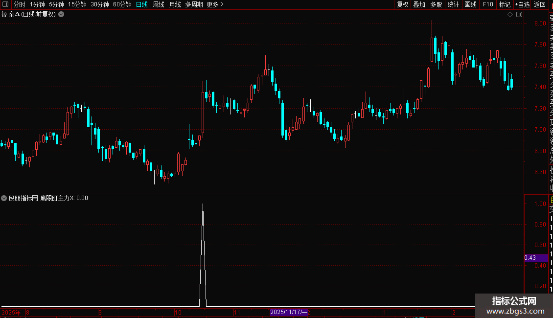 鹰眼盯主力X:AA1 AND AA2 AND AA3 AND NOWPAY>=JIAOH AND TOPAY>=0 AND (SANPAY-NOWPAY)<9.5 AND XGG1;