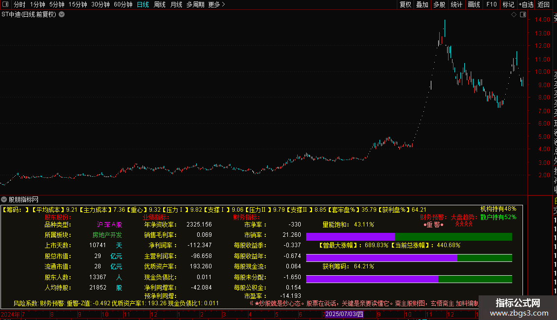 指标源码的主要功能是在K线图上集中展示股票的关键基本面(F10)数据和财务风险预警,省去手动翻看资料的麻烦。它把公司的核心“体检报告”直接叠加在交易界面上,方便投资者快速判断公司质地。