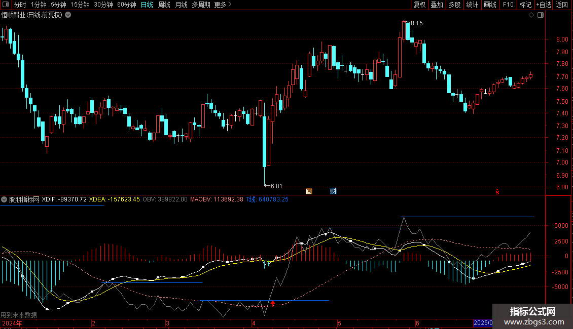 OBV:SUM(IF(CLOSE=REF(CLOSE,1),0,VA),0)COLORGRAY;
