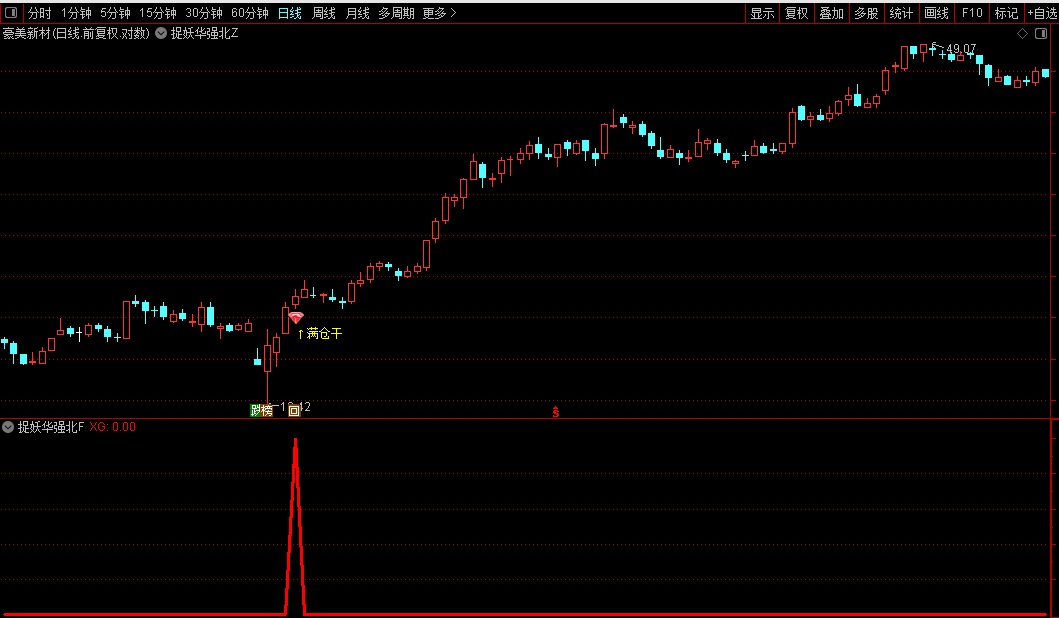 主图上的信号标识为“红钻”,并伴随“满仓干”文字提示。以深圳华强为例,该股在早盘集合竞价结束后发出预警,开盘价不高,适合挂单操作。挂单时可选择高于开盘价两个点的价格,但需注意不超过价格笼子,否则可能成为废单。