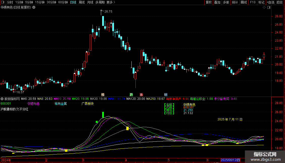 2. 均线系统:绘制5日到250日共8条常用移动平均线。