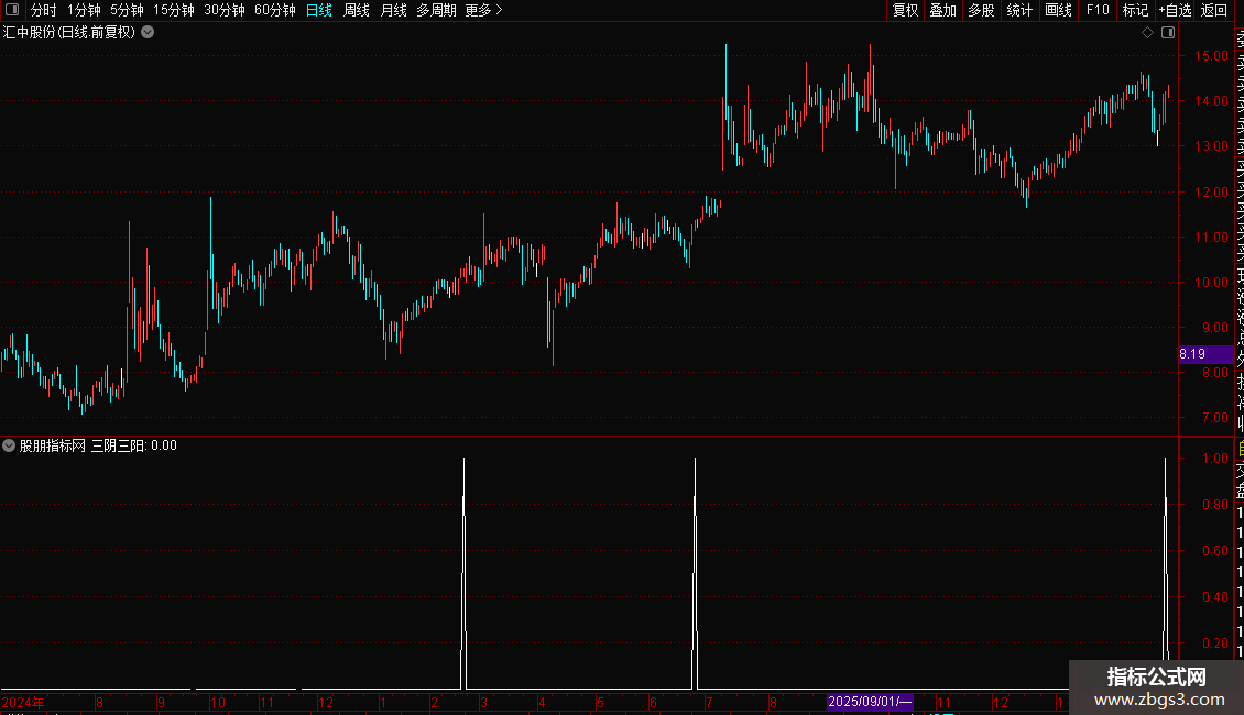 基础信号:=三连阳 AND EXIST(三连阴,10);