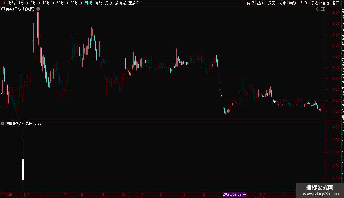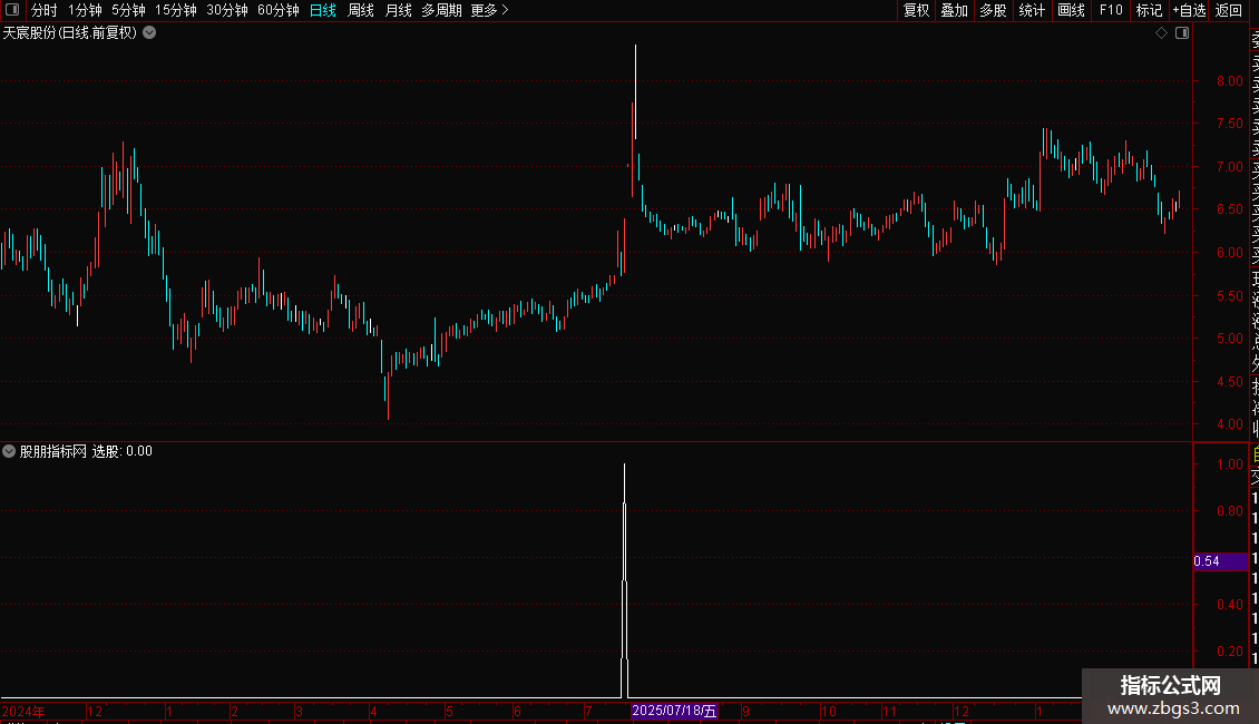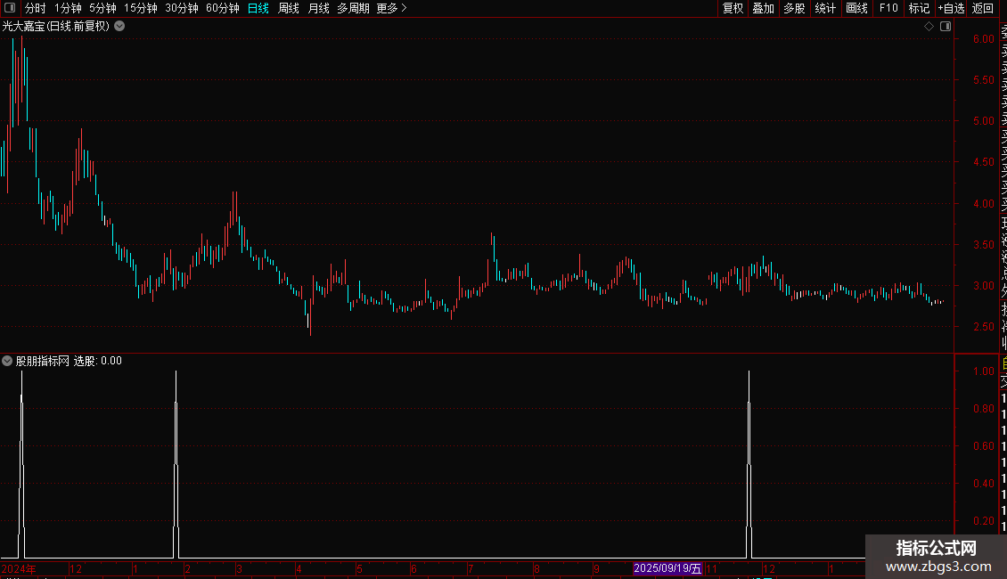 2. 加载后,指标会标记符合“选股”条件的信号点。