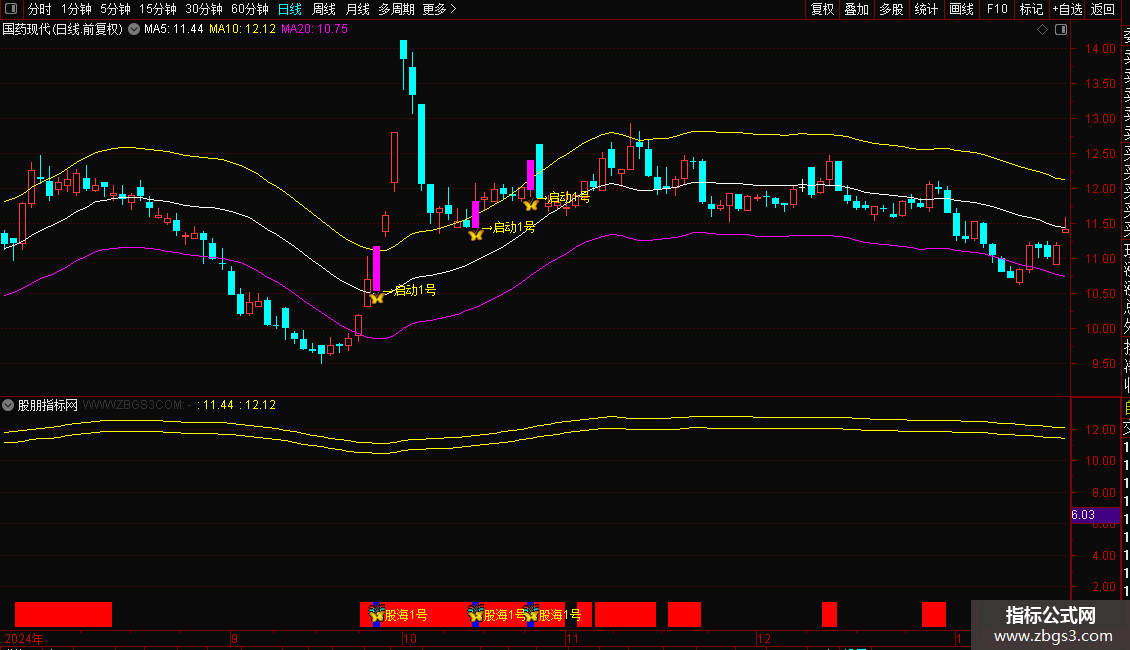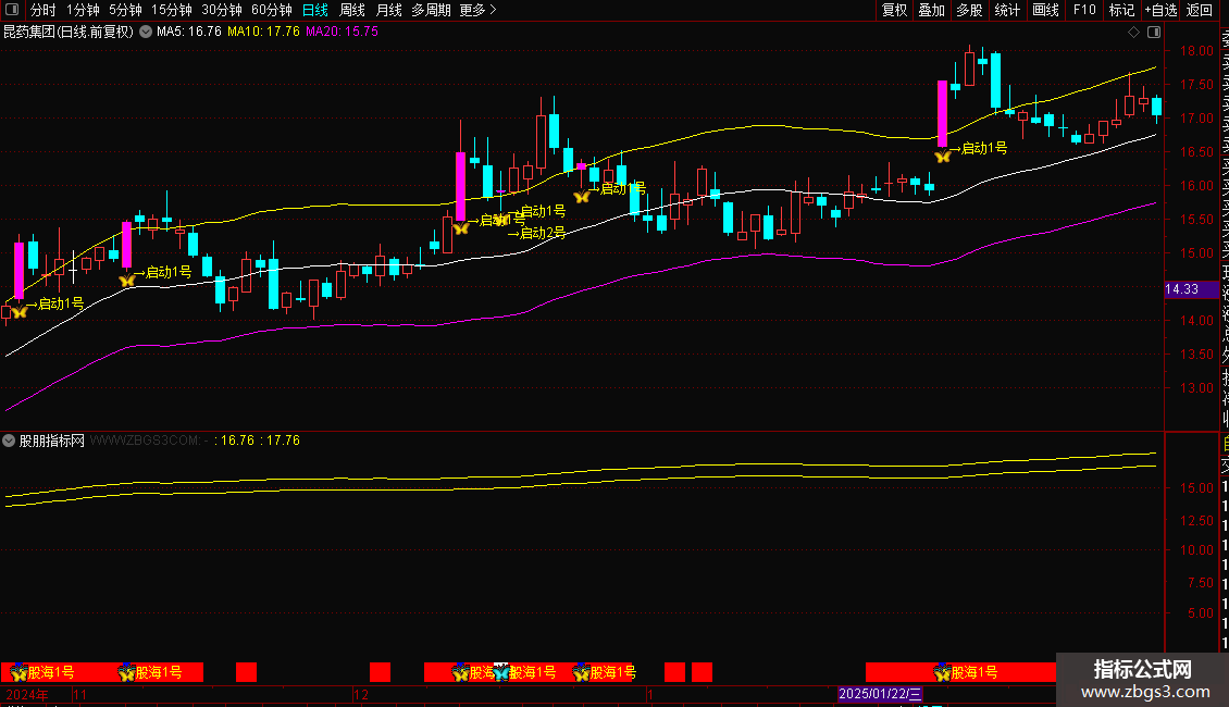 通达信『股海智航1号2号』主图副图指标,识别趋势启动实时捕捉突破顶线