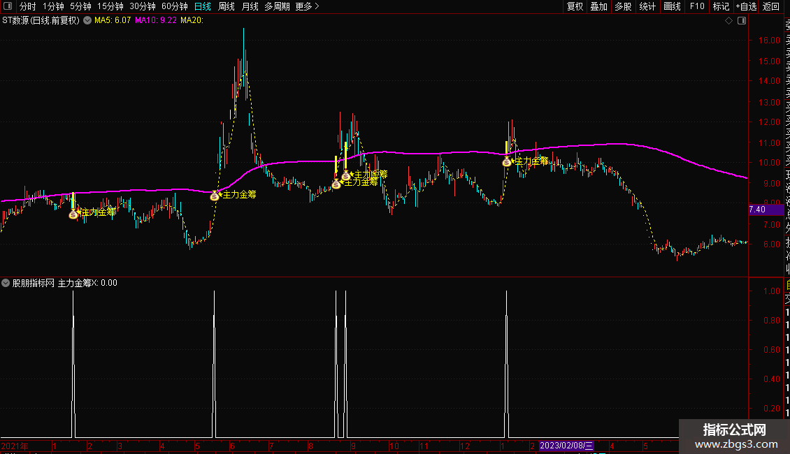金筹线:EMA(ZBGS3,200)*1.118,LINETHICK2,COLORFF00FF;