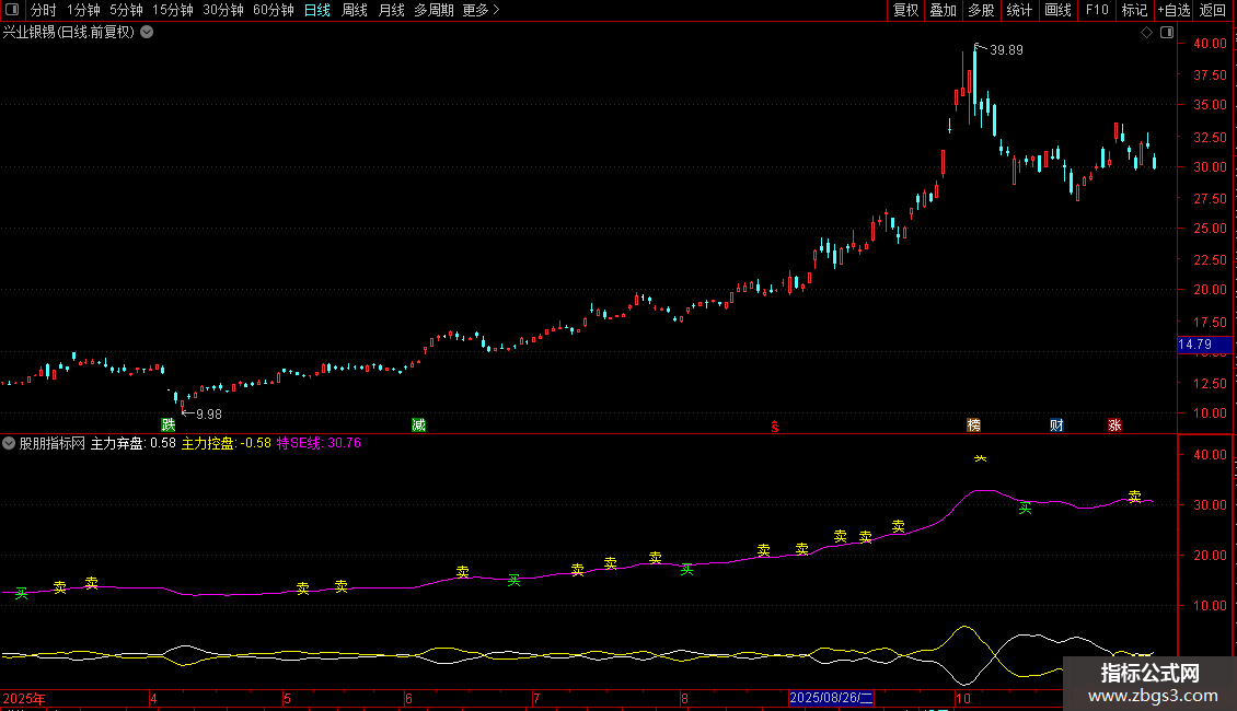 - 特SE线:基于加权价格的多周期EMA均值,反映趋势方向。