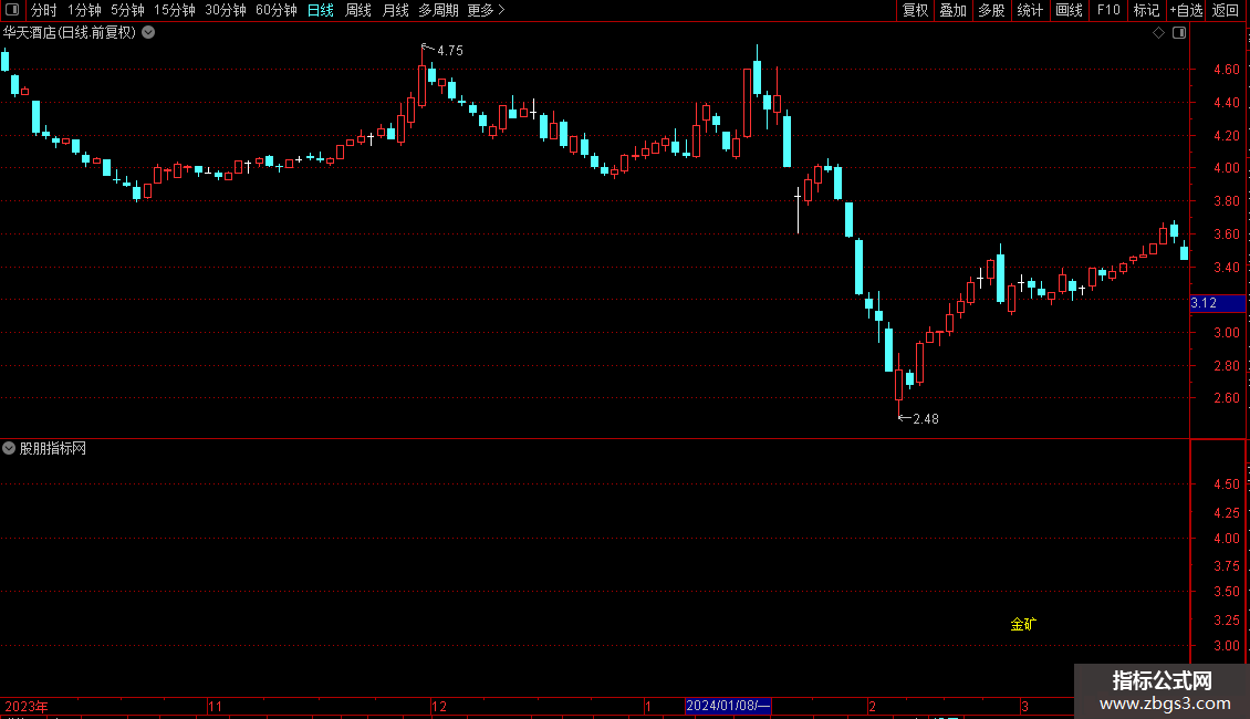 4. “金矿”信号:指标的核心输出。当满足一系列严苛的共振条件时,会在K线下方标注“金矿”字样。这些条件包括: