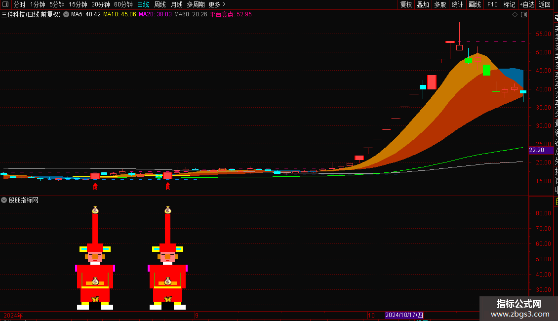 指标旨在捕捉个股在短、中、长期均线粘合后的放量突破行情。其核心逻辑是寻找股价一举站上多条均线,且伴随成交量显著放大和趋势向上的强势启动点。当所有条件共振时,副图会显示多彩的“火箭”或“烟花”形态及图标提示。