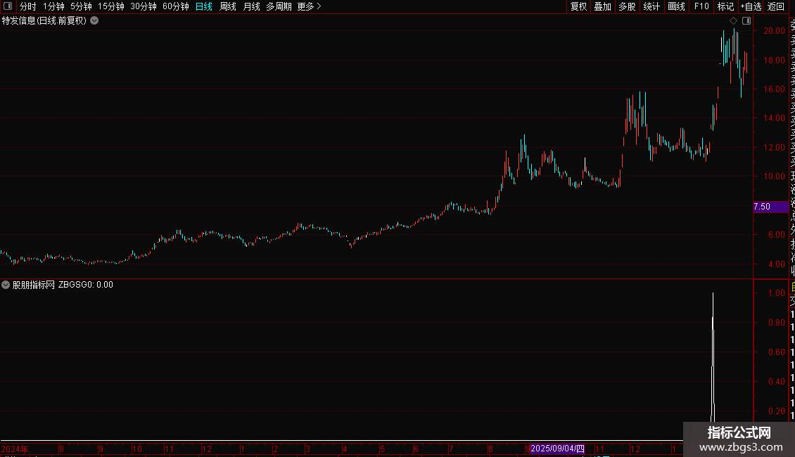 使用方法:尾盘14:50后在通达信“技术指标”中加载公式,指标出粉色柱时为信号,适合尾盘布局次日冲高的短线标的。