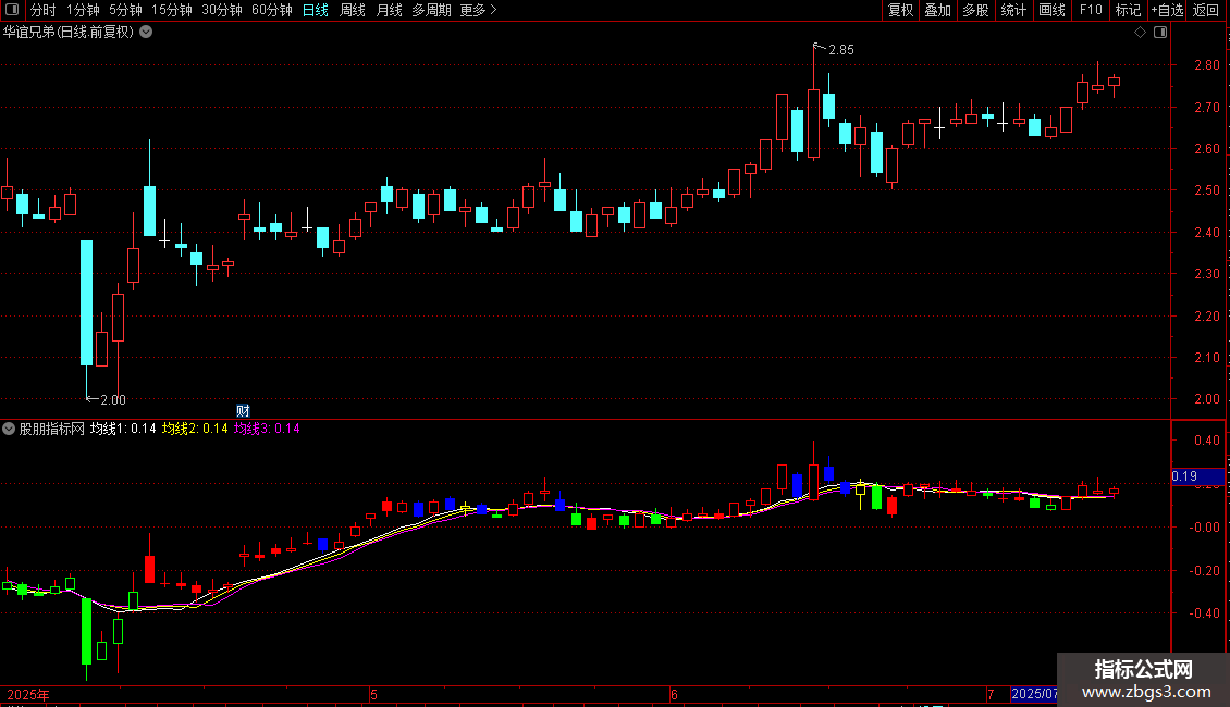 使用要点:指标通过颜色直接揭示价格相对于动态基准和通道的位置强弱及状态转换,辅助判断短期趋势的强度与潜在转折点。观察K线颜色与三条均线的排列关系是关键。