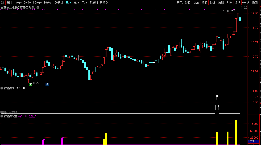 买入信号:当K线图上出现选股信号时,即为理想买入时机。这标志着股价已成功突破双重压力位,且量价关系配合良好,上涨趋势确立。