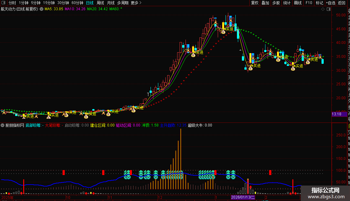 3. 在共振现象出现之后,如果主图进一步出现大阳买进信号,则意味着行情即将加速上涨,这是捕捉行情加速点的关键时机。掌握这一通达信底部共振指标,能够有效提升对股票启动阶段的判断能力,辅助投资者做出更明智的决策。