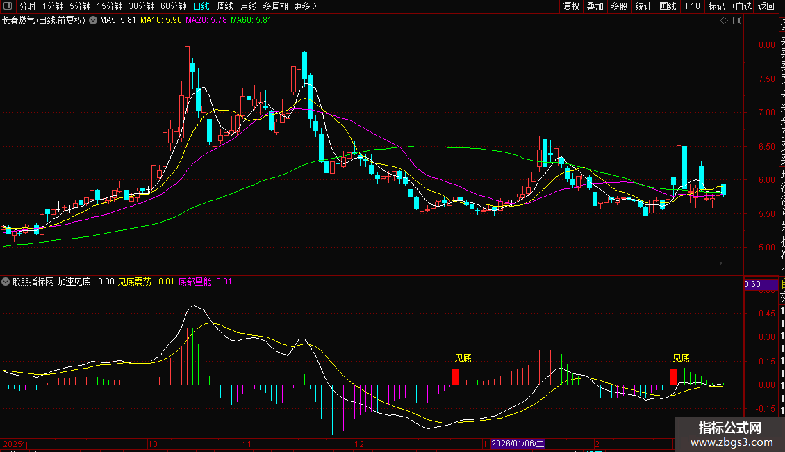 2. 核心信号为副图六次及以上见底+主图“即将拉升”标注,需结合60日均线确认;