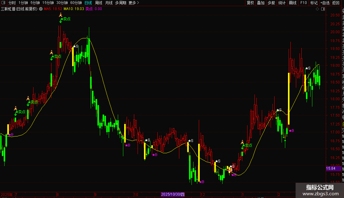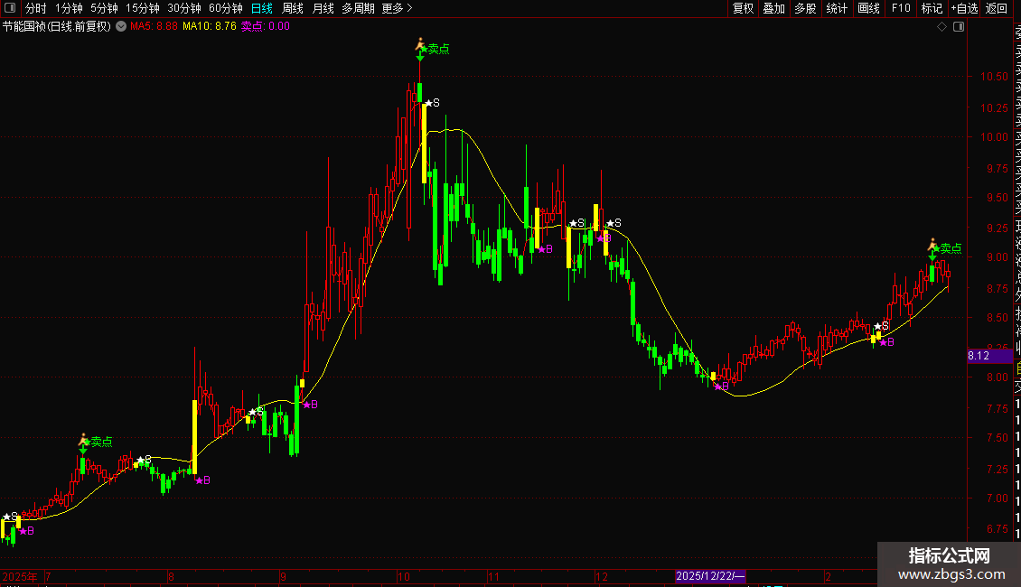 1. 主图公式:导入通达信主图指标后,K线变红代表多头趋势,★B出现为短线买入信号;K线变绿代表空头趋势,★S或“★卖点”出现需止盈止损。