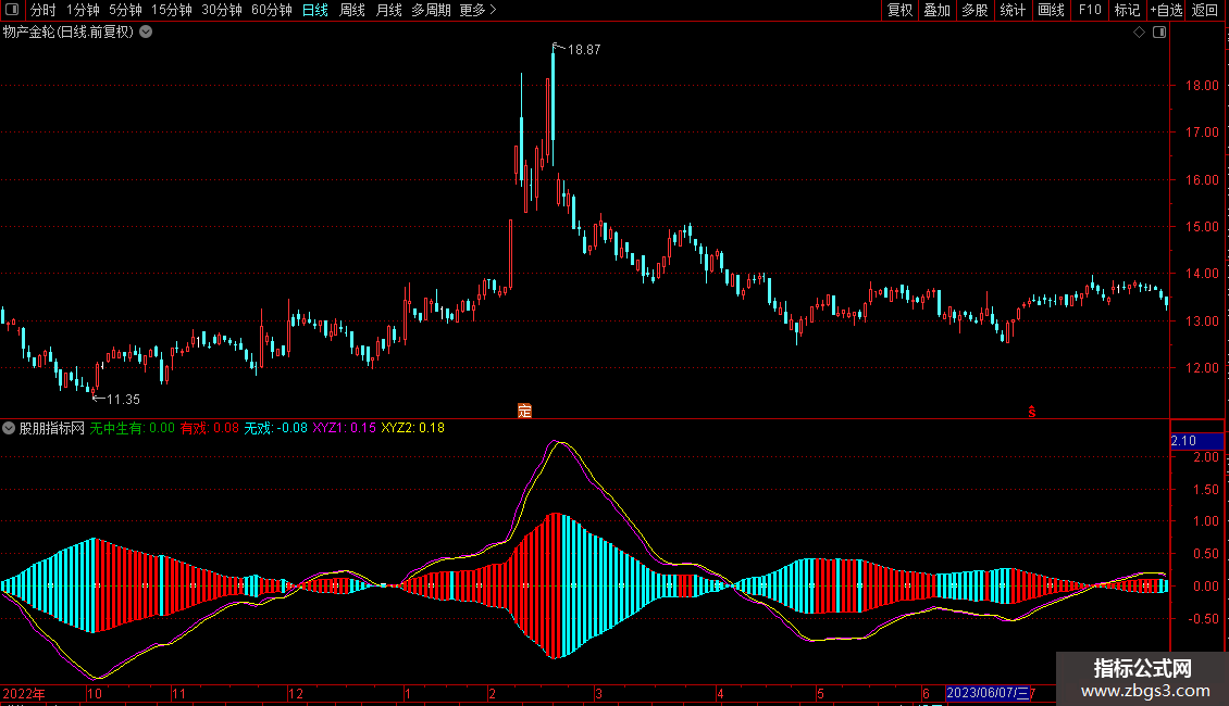 指标通过计算两条不同周期EMA的差值比率,构建“有戏”与“无戏”两条主线,反映短期趋势强度。其差值XYZ1与均线XYZ2的对比,用于判断多空状态,并通过柱状图直观显示。整体用于捕捉价格动量的变化与转折点。