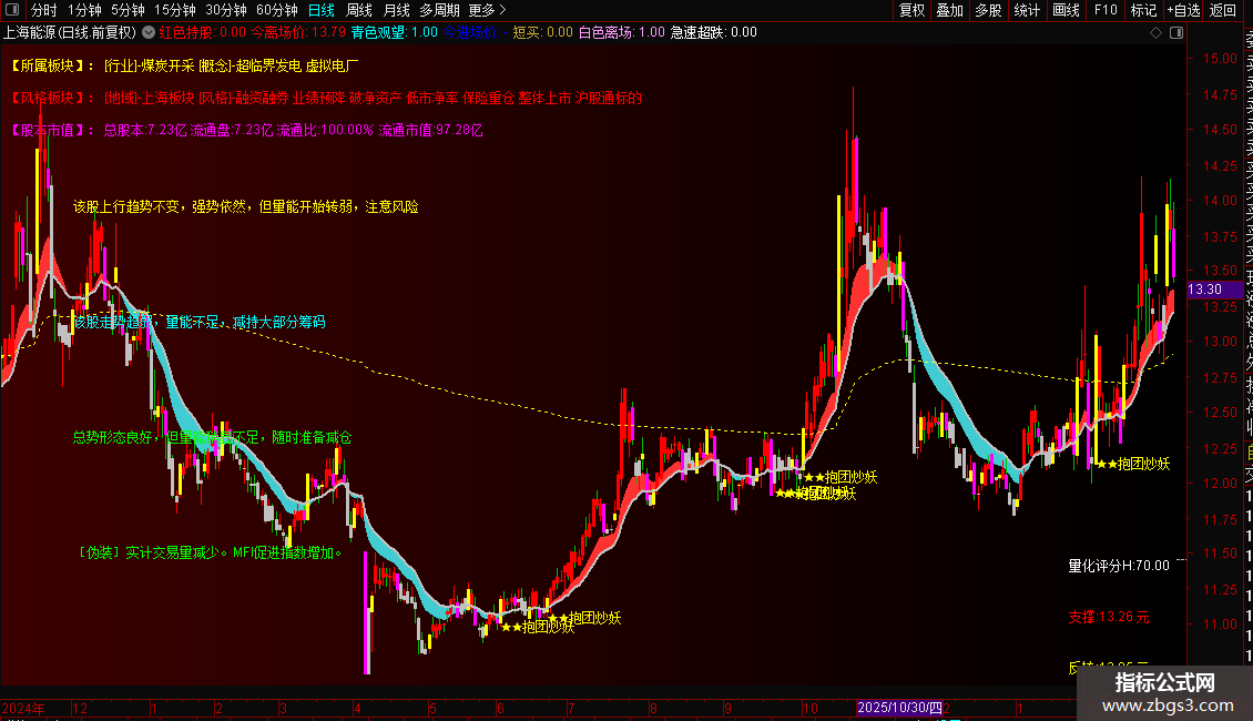 本通达信主图指标公式适用于日常盯盘监控,重点关注红色持股区域信号、抱团炒妖提示及反转拐点买入信号,帮助投资者精准把握主力控盘动向;
