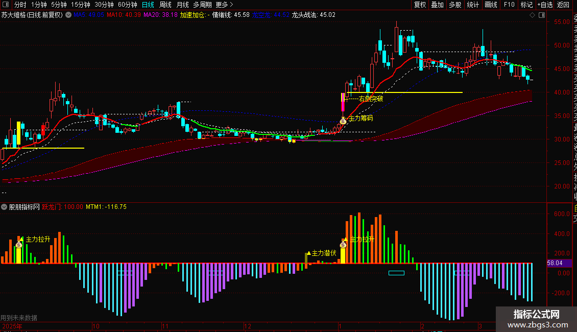 超级筹码突破副图指标是一个多功能共振系统,主要功能是融合趋势轨道、资金流向和超买超卖状态,旨在捕捉主力潜伏、洗盘结束及拉升启动的关键节点。操作策略上,当股价回调至长期支撑线附近且出现放量异动时,视为建仓良机;若短期指标在低位金叉并伴随主力资金流入,提示主力潜伏可关注;一旦股价突破关键压力线且涨幅显著,则确认为主力拉升信号,适合顺势跟进。核心在于识别主力行为,在低位布局,在主升浪持有。