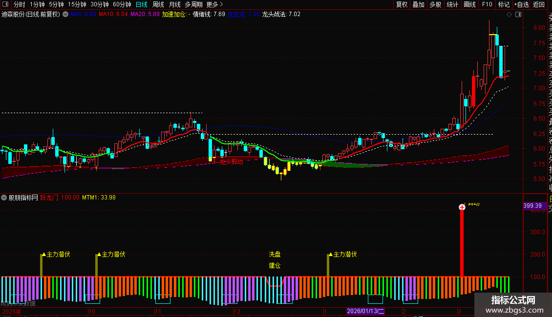 高度控盘:CROSS(主力控盘系数,轴) AND ACBD;