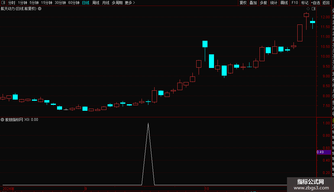 准备买入:=STICKLINE(趋势线< 11,趋势线,11,5,0),COLORYELLOW;