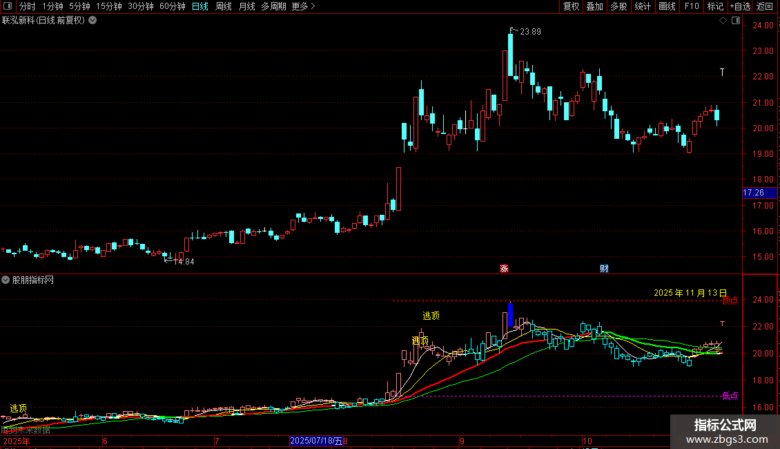 交易信号:可参考“B/S”图标信号,并结合“逃顶”提示注意风险。