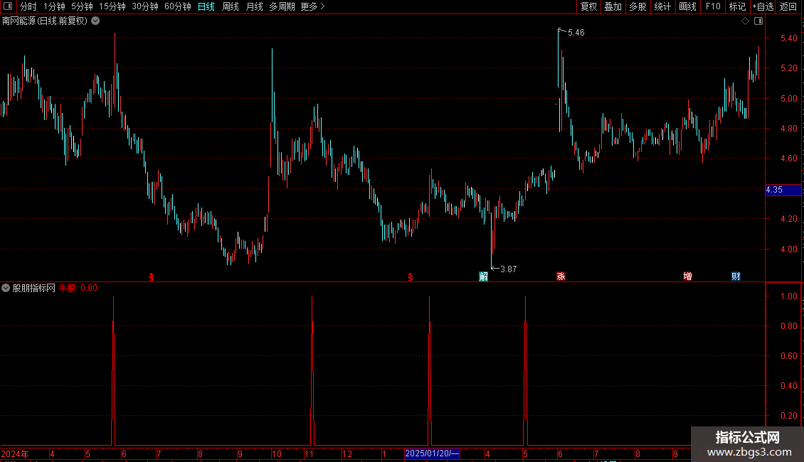 核心逻辑基于OBV(能量潮)指标。它通过统计连续30个交易日内OBV的历史最高值保持稳定(未创新高),且当前OBV最高值开始突破向上时,发出“牛股”信号。该信号通常预示着价格可能结束盘整并开始新一轮上涨。
