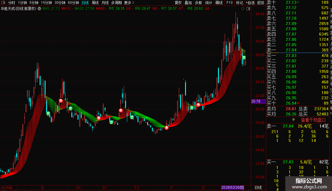 通达信〖顾比均线〗滤震荡噪音红线代表上涨绿线代表下跌主图源码