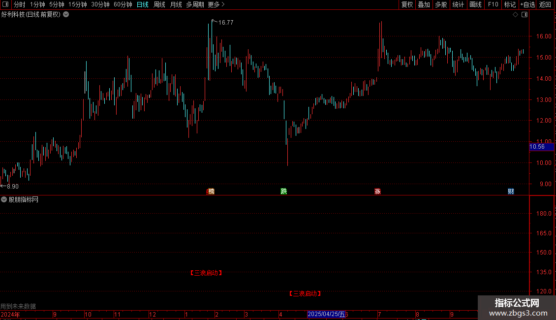 指标用于识别“三浪启动”形态。