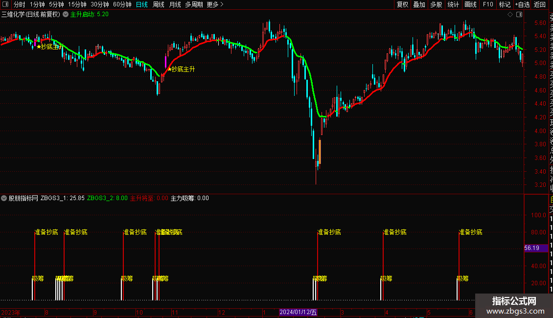 DRAWTEXT(CROSS(ZBGS3_1, ZBGS3_2), 80, '准备抄底'), COLOR00FFFF;
