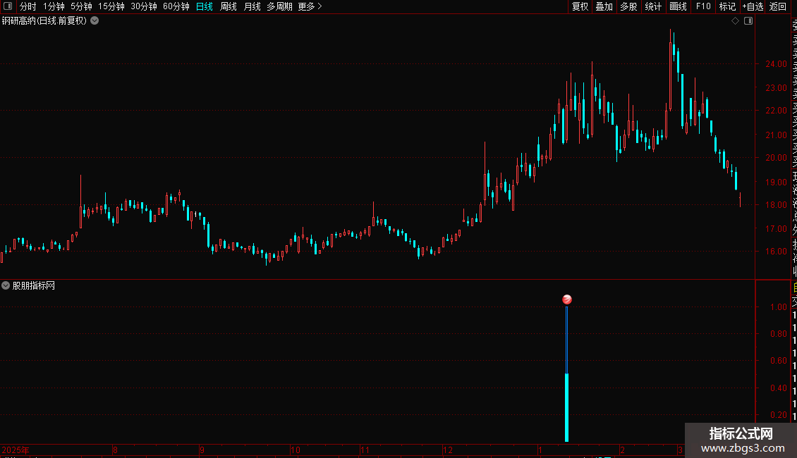 指标旨在捕捉短期超跌后的强势反弹机会。主要功能是通过监测股价与均线的偏离度及动量变化,识别主力洗盘结束的瞬间。操作策略上,当股价经历连续小幅回调或快速杀跌后,一旦突然出现大幅上涨并伴随指标发出彩色柱状及图标信号,即为最佳买入点。这通常意味着空头力量耗尽,多头开始强力反攻,适合激进型投资者进行短线狙击,博弈快速拉升行情。