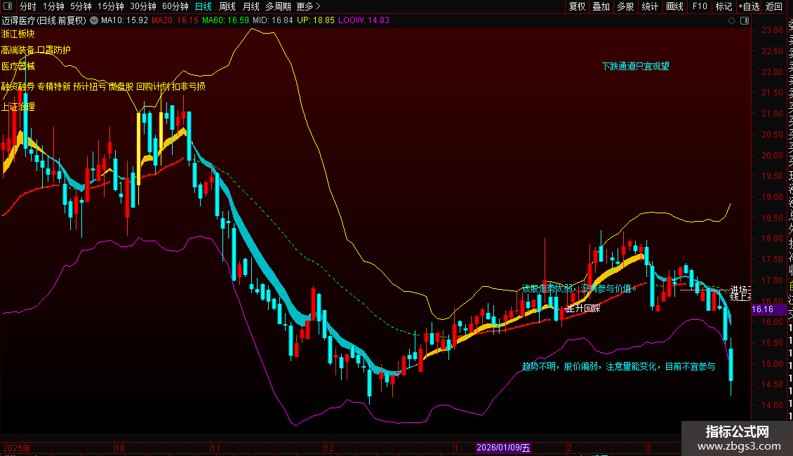 双轨布林增强:不仅显示标准上下轨,更增设极值轨道,直观识别股价超买超卖区域。