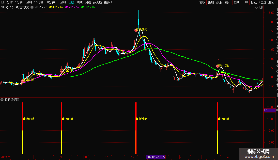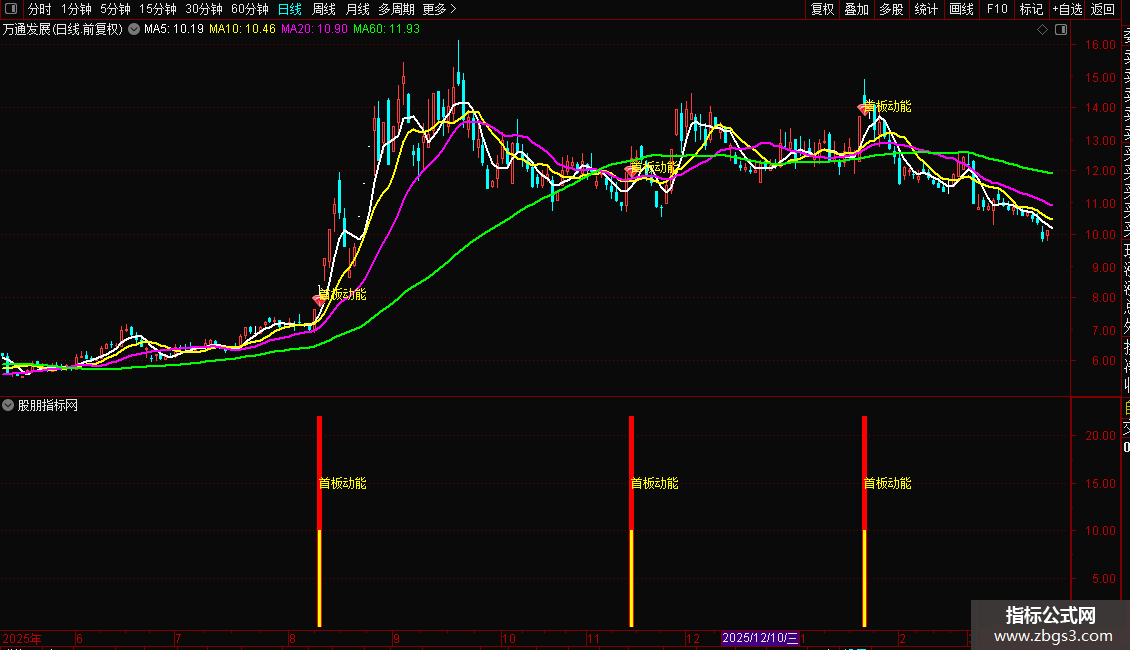 指标的主要功能是识别股票在经历一次显著的大阳线涨停板后,次日可能出现的强势回调或继续上涨的“首板动能”机会。其操作策略基于一个核心判断:寻找前一天收盘价等于当天最高价(即光头大阳线)且涨幅超过阈值的股票,同时要求当日的预测成交量在一个特定范围内(既不过于清淡也不过度放量)。当这些条件满足时,系统会在当天进行标记,提示投资者关注该股票第二天的表现,因为这可能预示着主力资金的介入和后续的上涨潜力。
