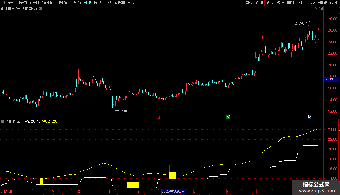 指标是一个复合型技术分析工具,结合了价格位置、移动平均、MACD及条件判断。