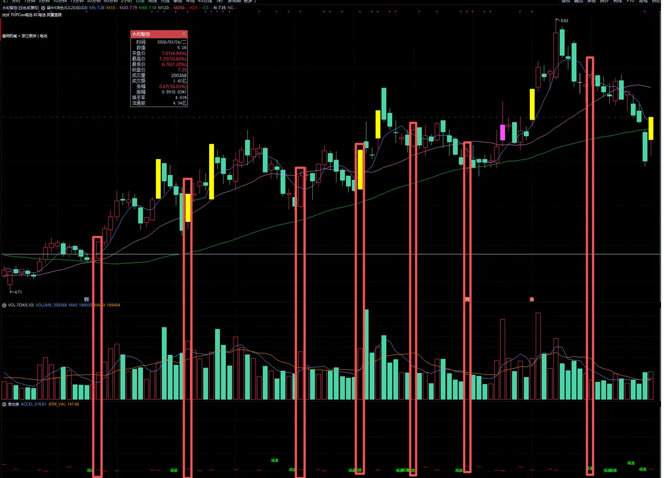 主力操盘不是 “一下子涨 / 跌”,而是 “先慢慢加速,再减速,最后反转”—— 急动度能捕捉到这个 “动力变化” 的过程,让你看懂主力是在 “真拉升” 还是 “诱多”,这是普通指标做不到的。