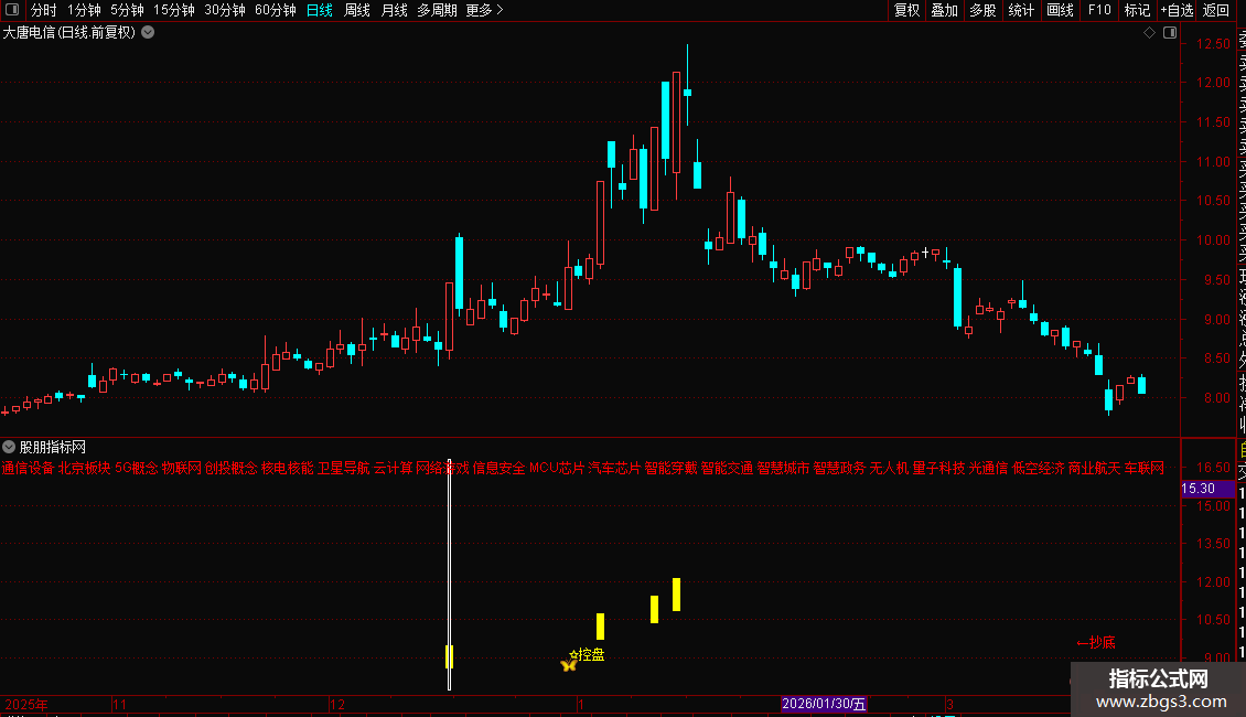 DRAWTEXT(BARSLASTCOUNT(X_CQ)=1,1.097*H,'←抄底'),COLORRED;