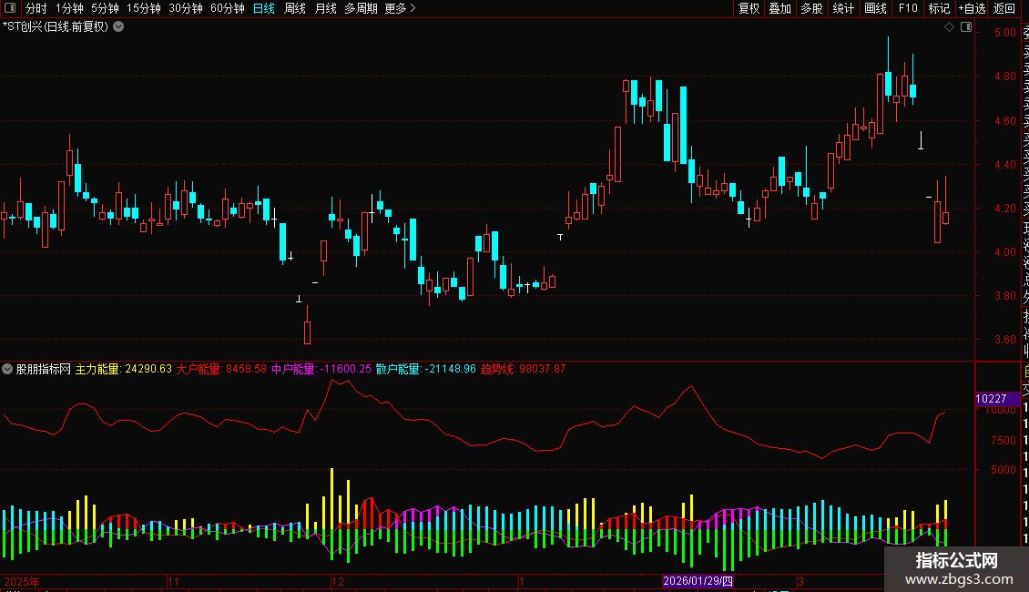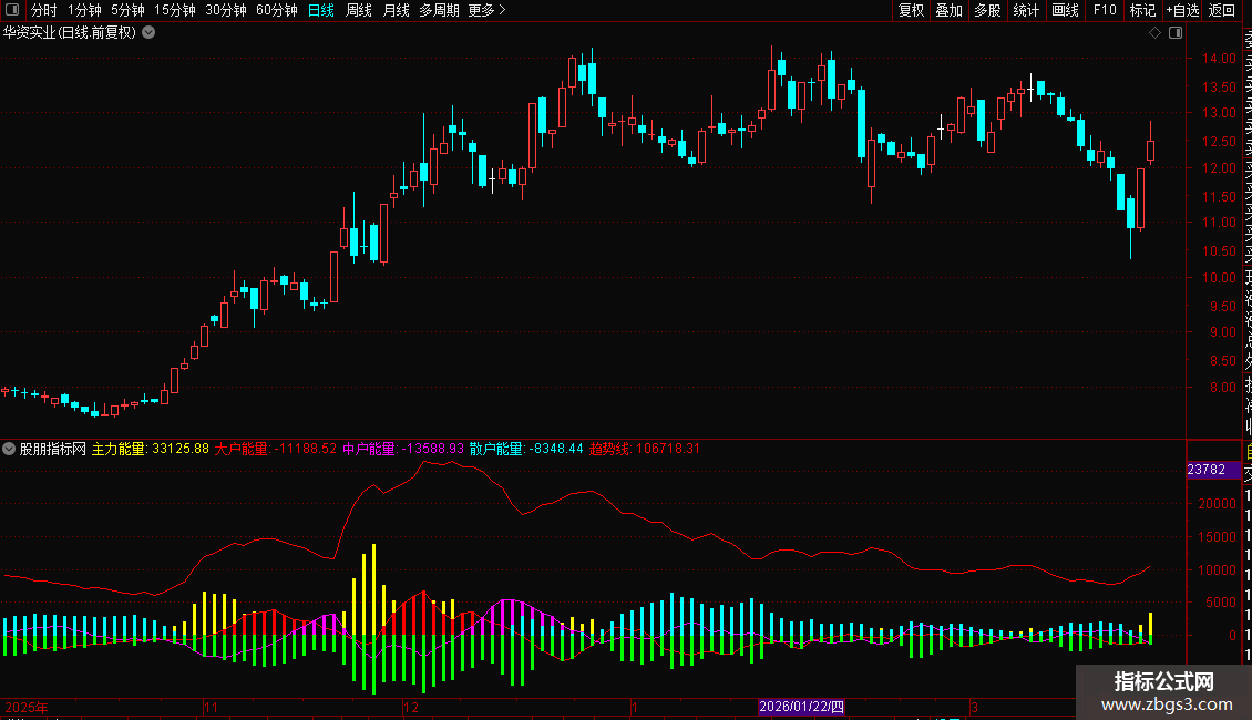 STICKLINE(中户能量>=0 AND 中户能量>=REF(中户能量,1),2,2+中户能量,1/3,0),COLORMAGENTA;