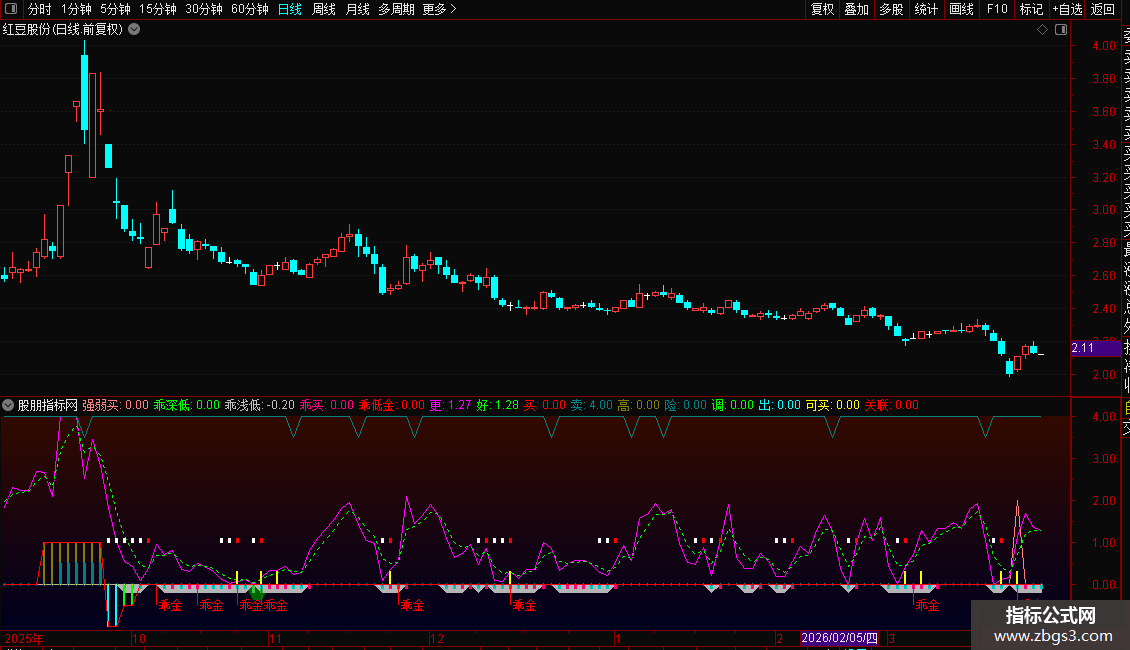 乖买:REF(乖浅低=-0.2,1)AND BIAS>REF(BIAS,1),COLORLIMAGENTA,NODRAW;