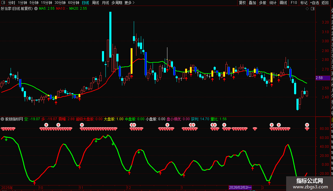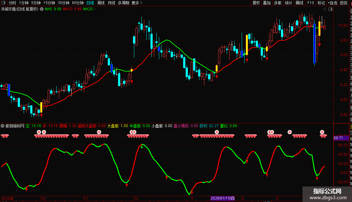 看趋势:当副图出现蓝色“多”线时,代表市场处于强势,可持股或寻找买入机会;当绿色“空”线出现时,代表市场走弱,应保持谨慎或离场观望。