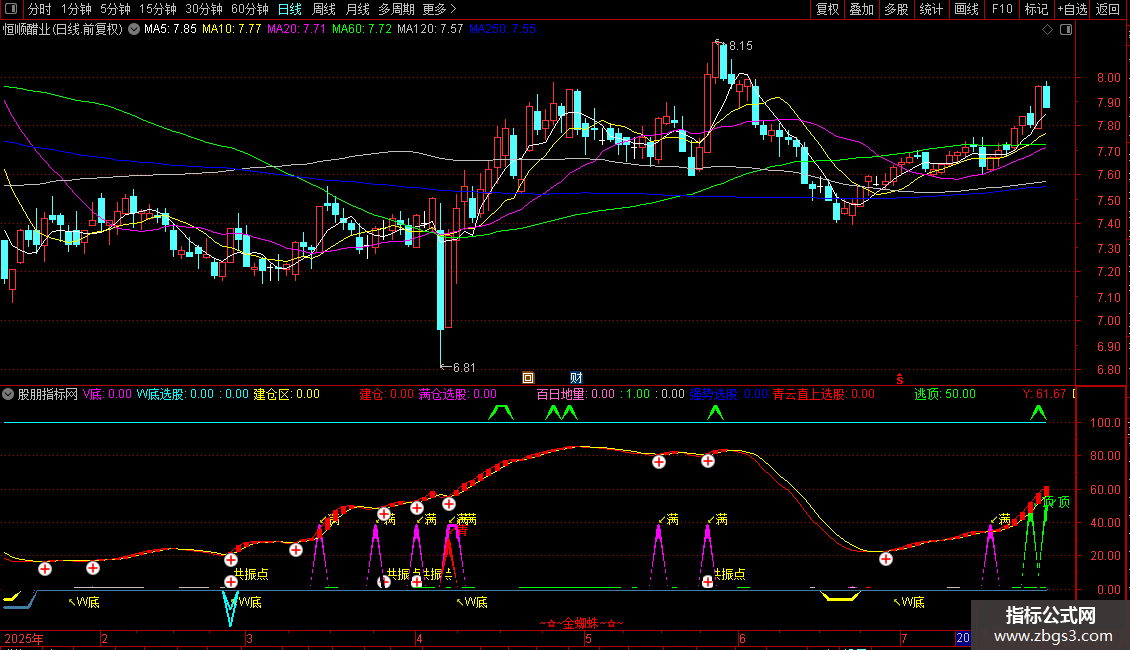 3. 金蜘蛛形态:通过多条均线(2、5、13、30、55日)的特定聚合与排列,识别“金蜘蛛”看涨形态。